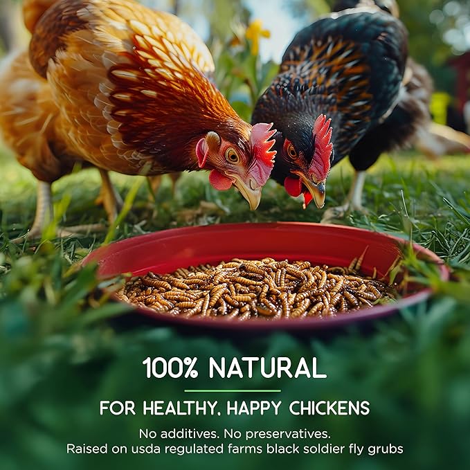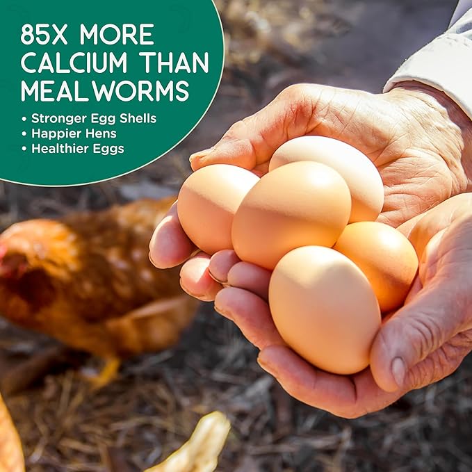 - MORE NUTRIENTS THAN MEALWORM: Elevate your chickens' diet with 85x more calcium than traditional mealworms. Loaded with 36-42% protein, 25-30% healthy fat, along with phosphorus, fiber, and lysine.