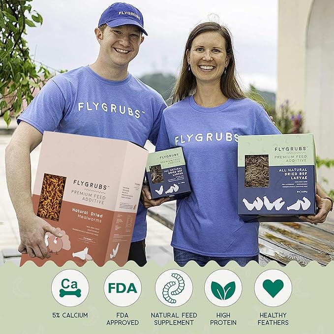 FLYGRUBS 20 lb Dried Black Soldier Fly Larvae – Superior to Mealworms for Chickens–85X More Calcium,Non-GMO,High-Protein Feed & Molting Supplement for Hens, Ducks, Turkeys, Wild Birds, Quails, Turtles