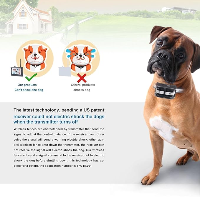 Wireless Dog Fence Training Collar Pet Two Way Signal 2-in-1 System, Adjustable Control Range Warning Strength, Display Battery Level, Waterproof Reflective Dog Collar