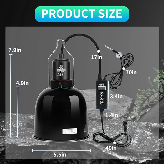 - Good Heat Dissipation :The top vent of heat lamp kit has good heat dissipation effect, this design prevents excessive heat buildup and reduces the risk of reptile burns while providing your reptile pet with basking spot light