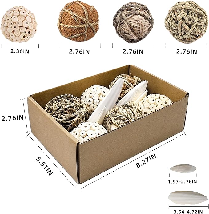- 【Contains Cuttlebone】In addition to the ball toys, the bird toys is specially matched with natural cuttlebone, which is rich in calcium and provides vitamins and minerals for your pet to promote your pet's health.