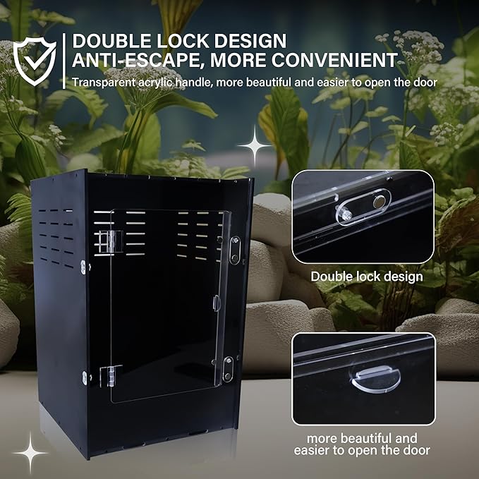 - High Transparency Acrylic Material, Easy to Clean and Maintain Made of high-quality acrylic, this small terrarium offers excellent visibility and is easy to clean. It ensures that your spider terrarium or reptile terrarium stays hygienic with minimal effort, providing a healthy habitat for your pets and saving you time on maintenance.