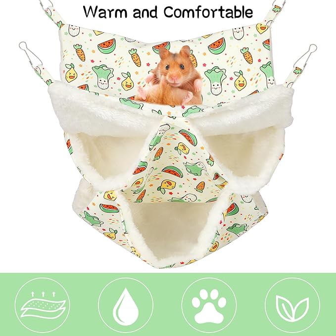 - Suitable for a Variety of Pets: The soft hamster hammock is the practical size, suitable for most small pets, including rabbits, kittens, hamsters, guinea pigs, puppies, ferrets, chinchillas,hamster and birds. No matter what kind of small animals, the pet can find comfortable corner in this chinchilla hammock