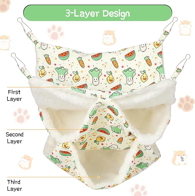 - Three-Tier Structure: The Guinea pig hammock adopts an innovative three-layer design, with the upper tier as a rest area, the middle tier for entertainment and the lower tier as a sleeping bag. This design imitates the natural habitat of small animals such as Guinea pigs, and increases their fun and activity space