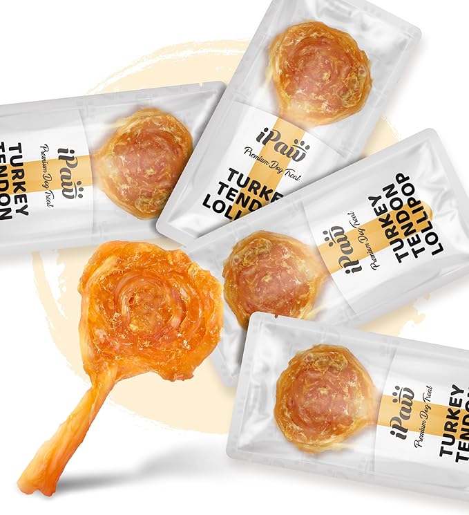 iPaw Turkey Tendon for Dogs, Ingredient Sourced from USA, Hypoallergenic, All Natural Human Grade Puppy Chew, Dog Treats for Signature Series, Rawhide Alternative, 4 Units/Pack Lollipop (Small)