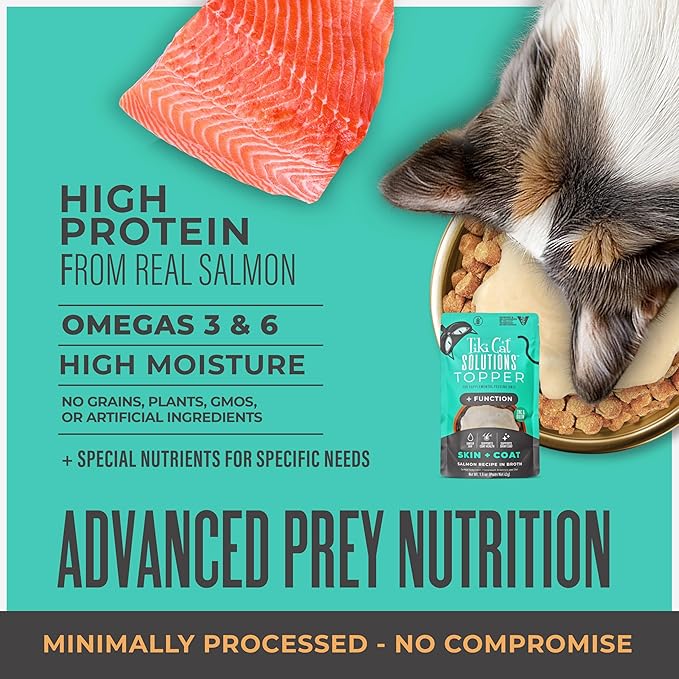 Tiki Cat Solutions Topper Multipack, Skin Coat, Salmon Recipe in Broth, 1.5 oz. Pouch (12 Pack)