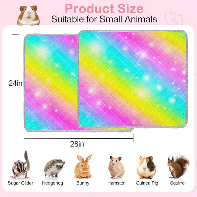 2 Pack Guinea Pig Bedding, Washable Guinea Pigs Cage Liner Reusable Guinea Pig Mat Waterproof Guinea Piggy Bedding for Cage, Super Absorbant Pee Pads for Small Animals Hamster Rabbit Squirrel