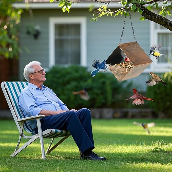 - Charming Retro Square Design: This outdoor bird feeder features a bold square shape with clean, minimalist lines. Attract a variety of birds like cardinals, canaries, and robins, bringing life and beauty to your outdoor space