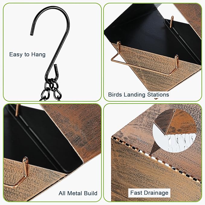 - Built for All Seasons: This metal bird feeder is exceptionally durable, rust-proof, and corrosion-resistant. It's designed to withstand various outdoor elements, ensuring long-term enjoyment without the need for frequent replacement
