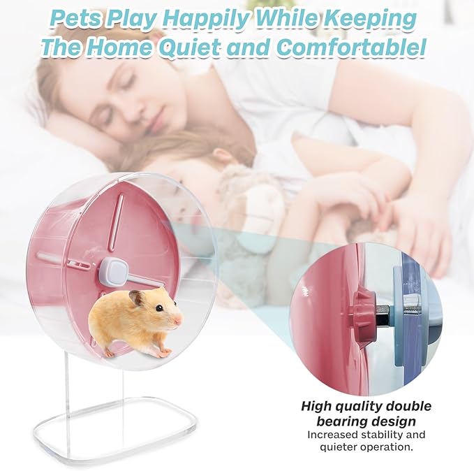 - SUPER SILENT HAMSTER WHEEL: Our hamster silent running wheel contains double bearings, no noise at night running, the volume control at about 30 decibels, will not affect the owner of the rest