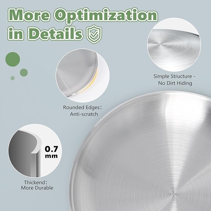 Stainless Steel Cat Bowls Set – 6.7" Whisker Friendly Shallow Dishes, Dishwasher Safe Food & Water Plates for Indoor/Outdoor Cats, 13oz (SUS304, 7Pcs)