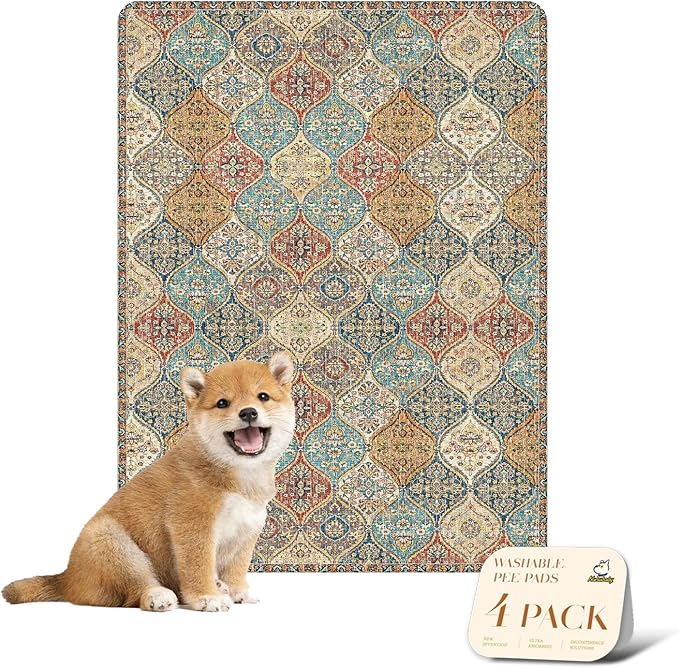 nunubaby 4PACK Washable Pee Pads for Dogs, Stylish, Non-Slip and Leak-Proof Pee Pads. Reusable Potty Pads for Dogs for Crates and Floors.(Cream/Multi, 18" x24")