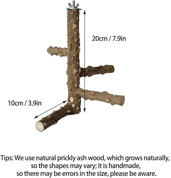 - Natural wood perch stand toy designed to provide a comfortable resting spot for your birds.