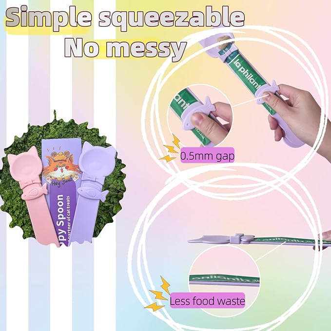- Effortless Squeeze Feeding: Designed for cat treats, wet food, and puree, this squeeze spoon dispenses lickable snacks smoothly without messy spills. Perfect for fussy eaters