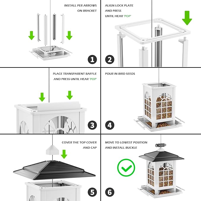 - EASY & FUN TO ASSEMBLE: This bird feeders features a charming courtyard-style design and can be assembled in just one minute. It's a simple and engaging activity that brings enjoyment to the whole family