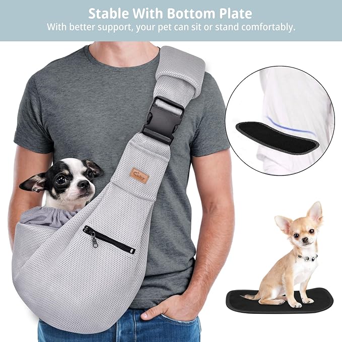 CUBY Dog and Cat Sling Carrier - Hands Free Breathable Mesh Small Dog Sling Carrier-Soft Pouch and Tote Design-Suitable for Puppy, Small Dog Cat Pets Carriers Sling Outdoor(Grey-Mesh,Adjust Strap 2.0)