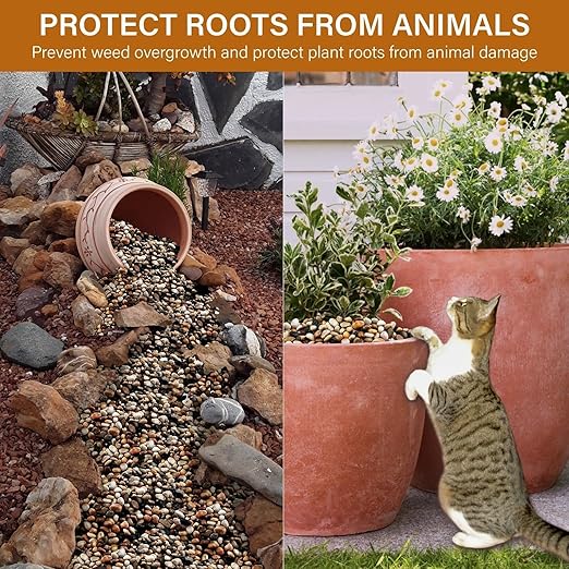 - Plant-Friendly Protection: The non-sharp edges of our stones for plants not only enhance aesthetics but also safeguard potting soil and plant roots from animal damage. It is versatile for outdoor gardens and vegetable plots, deterring weeds and protecting against other outdoor animals like squirrels.