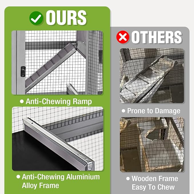 - 【Anti-Chewing】🚪To address the natural chewing behavior of small animals, the edges of the ramps and platforms are covered with a durable aluminum alloy material. This chew-resistant coating helps prevent your pets from damaging the cage while keeping your animals safe.