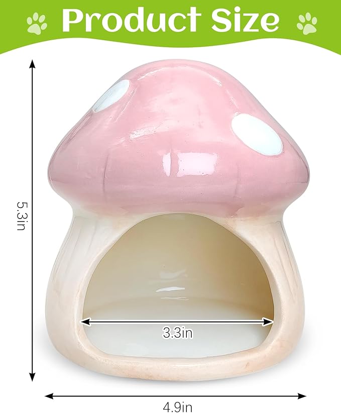 - Appearance: Ceramic hamster hideout with unique mushroom-shaped design, hamster hideout ceramic mushroom is not only practical, but also decorative habitat, hamster hideout cute adding fun to the life of pets