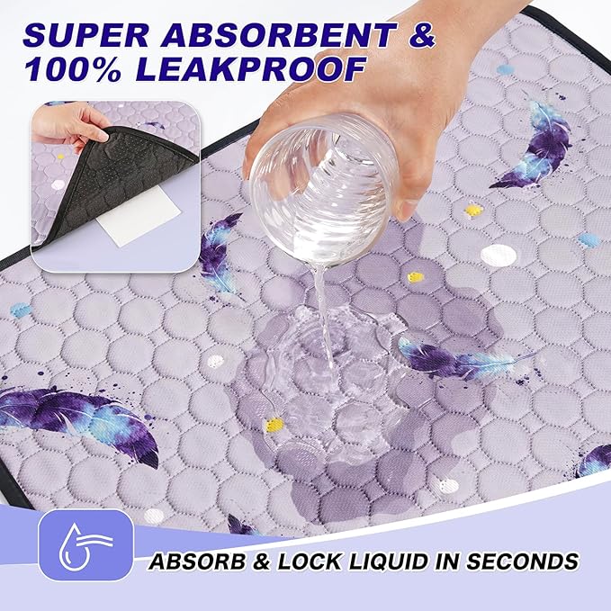 Washable Pee Pads for Dogs, 2Pack Reusable Puppy Pads, Super Absorbent & Leakproof Dog Pads, Anti-Slip Dog Pee Pads for Puppy Training & Incontinence, Feather Pattern 24"x36"