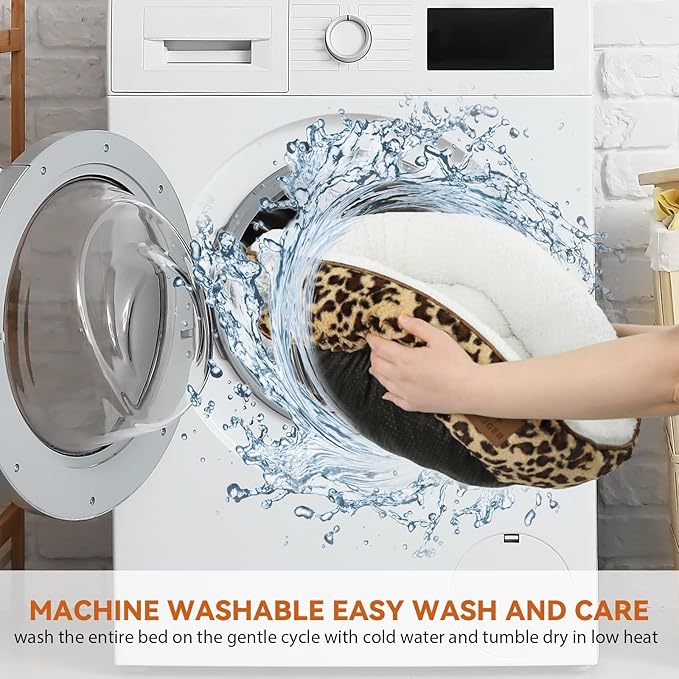 Cat Bed, 23In Dog Beds for Small Dogs, Calming Cat & Dog Beds for Indoor Pets, Pet Beds Comfortable Donut Round Ultra Soft (Leopard, Medium 23in)