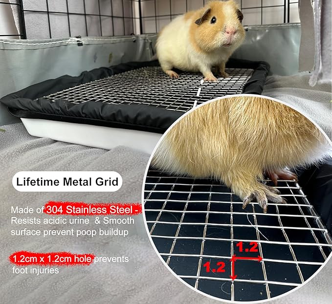 - 1. Rustproof & Durable :Designed for lifetime use, our 304 stainless steel grid is corrosion-resistant, smooth, and prevents urine buildup. Unlike plastic grids that crack and degrade over time, this non-rusting metal grid ensures a clean, comfortable surface for your pet. The 1.2cm mesh holes prevent paw injury and waste accumulation, keeping your pet’s feet clean and healthy.