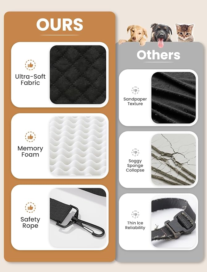 - Stress-Free Ride, Happy Tail Wags: Minimize bumps and anxiety for your anxious adventurer. The shock-absorbing memory foam core in this Dog Car Seat smooths out road vibrations, creating a calm and serene travel experience that keeps tails happily wagging.