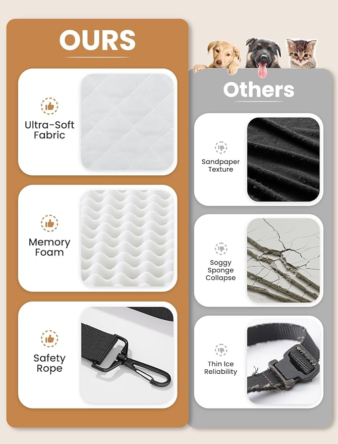 - Stress-Free Ride, Happy Tail Wags: Minimize bumps and anxiety for your anxious adventurer. The shock-absorbing memory foam core in this Dog Car Seat smooths out road vibrations, creating a calm and serene travel experience that keeps tails happily wagging.