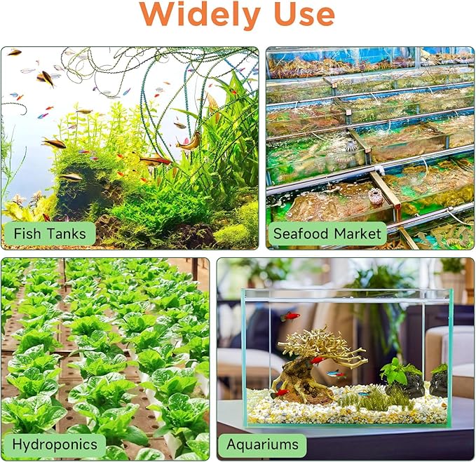 - High Dissolved Oxygen Rate: The blue control valve allows you to adjust the intensity of air bubbles. Fish tank bubbler can release smaller, denser and more uniform bubbles, increase oxygen levels while reduce carbon dioxide levels, and raise the pH value. Ultra-fine pore design, even after a period of time, will not cause a decrease oxygen released due to floating objects in the water clogging up the pores.