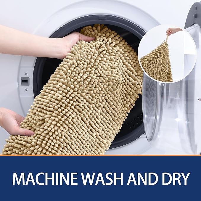 OLANLY Chenille Dog Bath Towel 31x13, Ultra Absorbent Quick Dry Pet Towel, Extra Soft Washable Plush Towel for Large Dogs & Puppies, Indoor Outdoor Use, Beige