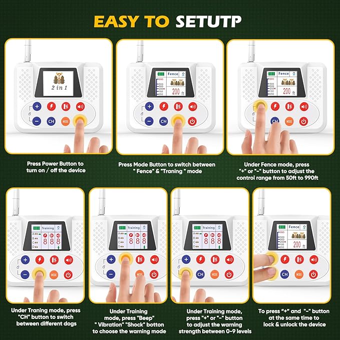 - 2025 Upgraded Version: NBSUN newly released the 3rd generation of Wireless Dog Fence System adapted with a large colored LCD screen, provide user-friendly interface for easy setup and control. This innovative 2-in-1 system combines the function of a Wireless Dog Fence with a Remote Training Collar. The electric dog fence systerm with 2.4GHz signal technology, ensures stable and accurate signal transmission, signal easily penetrating walls without any interruption.