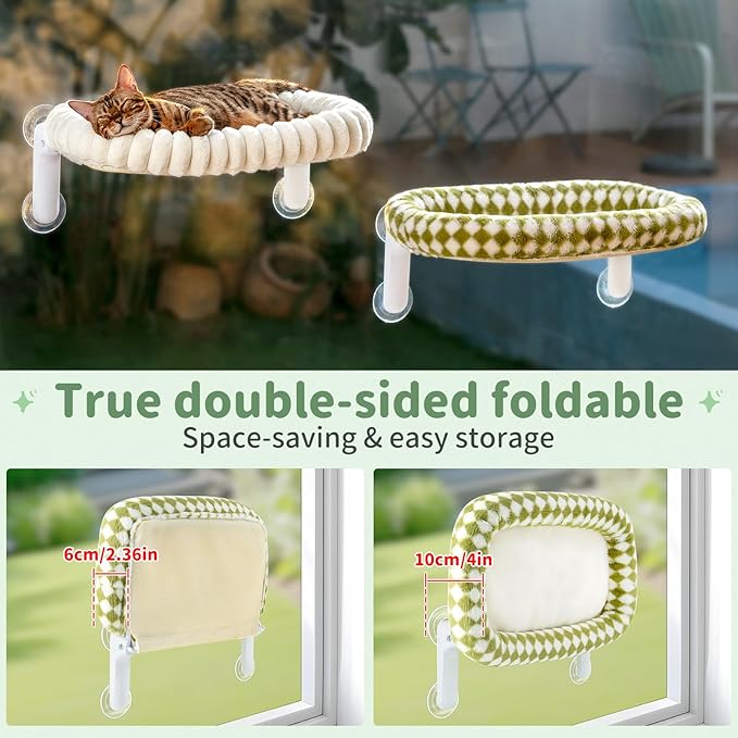 - Raised Edges for Cozy Nest: The soft, wraparound edges of our window cat bed offer gentle support for your cat's head, neck, and paws, creating a cozy, nest-like environment that helps reduce anxiety and promotes deeper, more restful sleep
