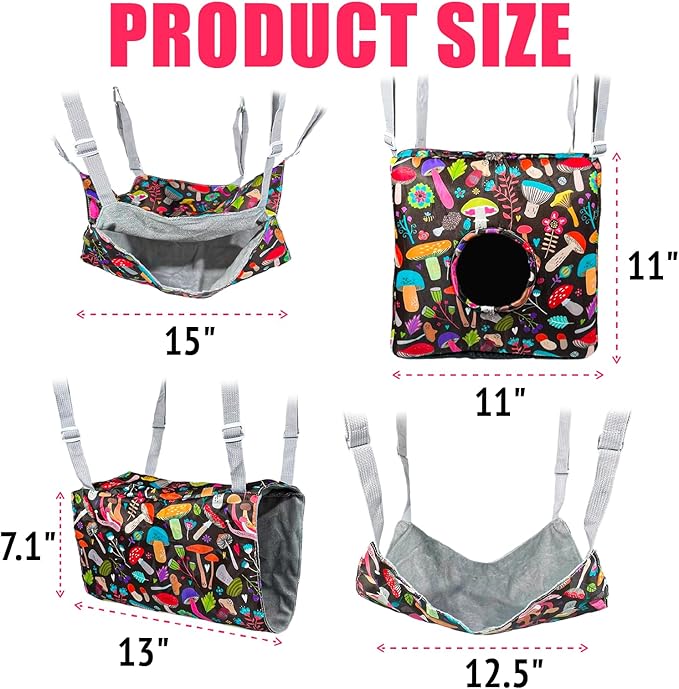 Guinea Pig Hammock,4 Pack Ferret Hammock Small Pets Hanging Hammock Ferret Hideout Bed Hamster Cage Accessories for Guinea Pig,Rat,Sugar Glider,Squirrel,Hamster(Mushrooms)