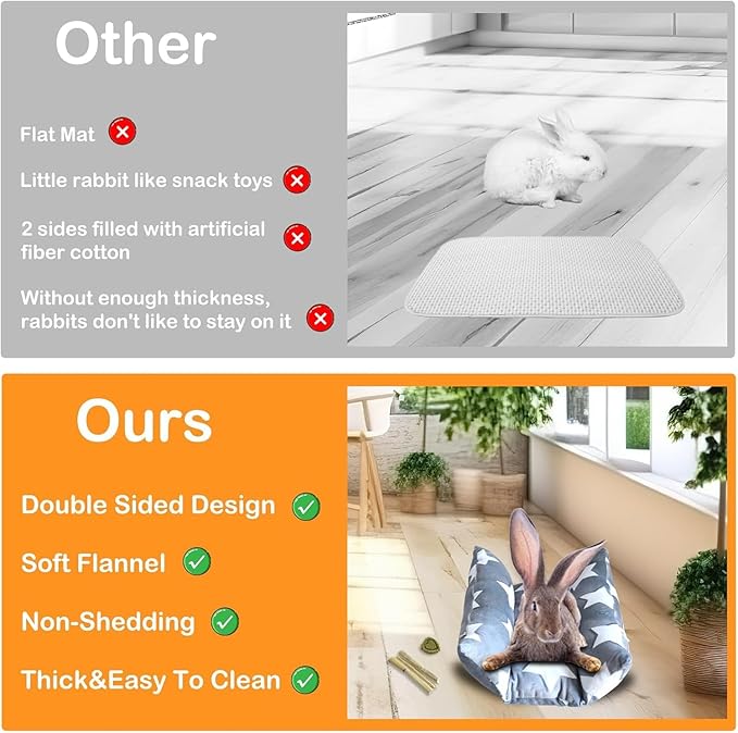 - Cozy And Warm Design: Unlike Other Rabbit Bed, Amremsu Rabbit Bed Huts Are Not Only Increased In Length And Width, But Also Thickened With Cotton To Ensure The Comfort Of The Rabbit Huts To A Great Extent Amremsu Rabbit Bed Is Filled With High-Quality, On 2 Sides Thick Cotton, The Middle Is Also Thickened With Cotton Padding To Create A Fluffy And Comfortable Pillow That Gives Your Rabbit The Feeling Of Being Wrapped In Your Embrace And Feeling Safe And Comfortable.