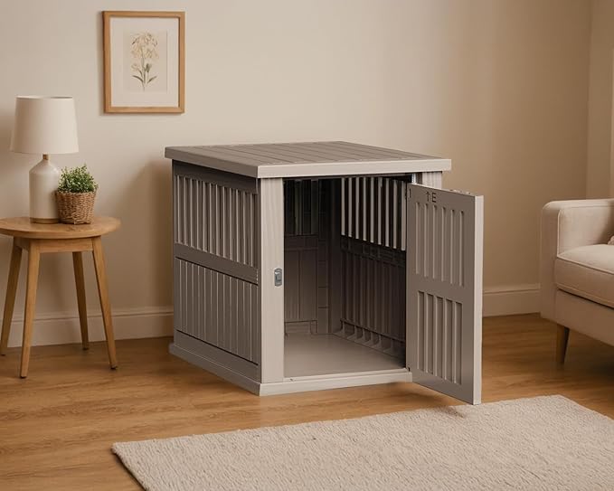 - [High Quality Material]: Our dog crate furniture is made of high quality PP material, which is super tear-resistant. It can withstand dog's tearing and ensure durability. Unlike the noise of steel dog crates, our dog crate stays quiet when your dog is tearing.