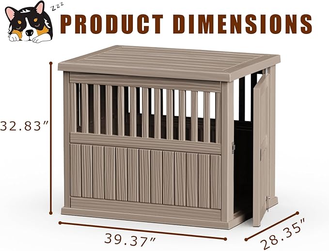Vixzen Dog Crate Furniture for Small to Large Dogs,Decorative Resin Kennel Indoor,Multifunctional Dog Crate with Locking Buckle,End Table,Durable and Sturdy(Light Brown 39.37 * 28.35 * 32.83)