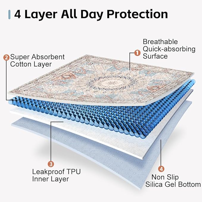 - Leak-Proof in 4 Secs: Rapid-dry top layer + waterproof middle membrane block leaks for long time,sand non-slip rubber baseafeguards floors/car seats/couches.