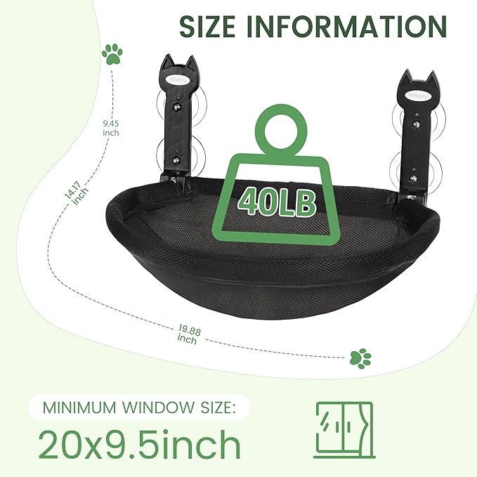 - 【Cordless Cat Hammock】 HiPetpy cat window perch measures 19.88 x 14.17 x 9.45 inches and supports cats weighing up to 40 lbs. Its cordless installation allows your cat to jump up and down freely.