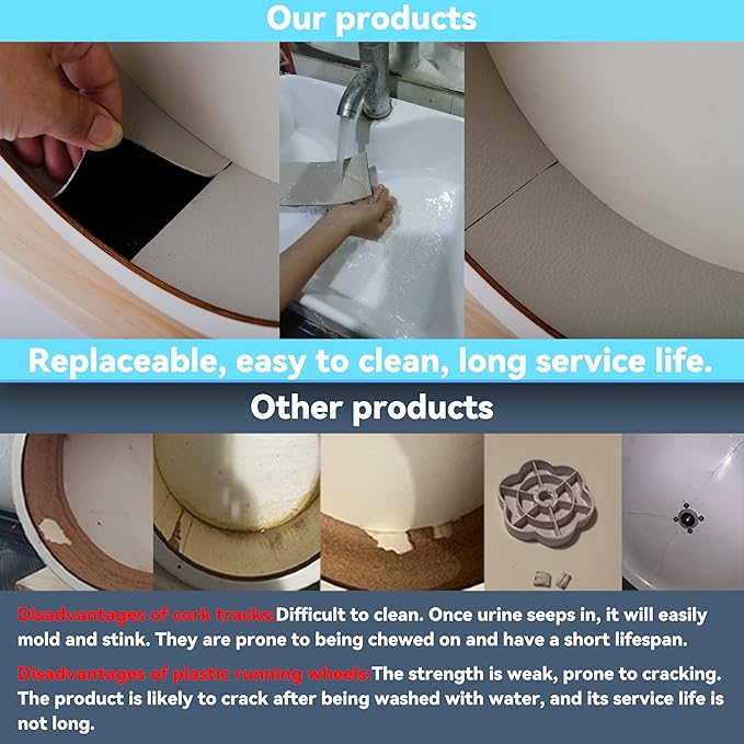 - Waterproof, anti-slip, scratch-resistant, detachable and soft running track. The main body of the running wheels is doubly protected by a waterproof isolation layer. The running track and the waterproof isolation layer can be washed with water for easy cleaning.It is more durable than metal chinchilla wheel, and the track is also softer than metal chinchilla wheels