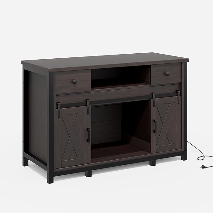 Miereirl 55-75 Gallon Fish Tank Stand with Power Outlet – Heavy Duty Aquarium Stand, Rustic Farmhouse Style, 800 lb Capacity, Adjustable Storage & Sliding Barn Doors, Dark Brown