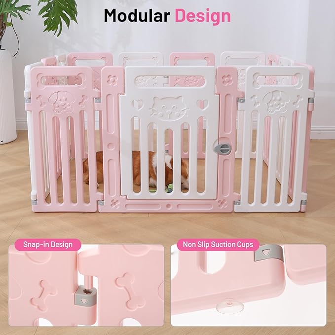 - Durable and Protective: Crafted from heavy-duty HDPE resin, this plastic dog pen is safe, odorless and ensures durability and safety. The bottom connectors are equipped with large suction cups to secure the playpen in place, protecting your floors and keeping your pet safe. It's also chew-proof and gentle on your pet's skin. With this playpen, your dog can safely enjoy his time exploring and playing.