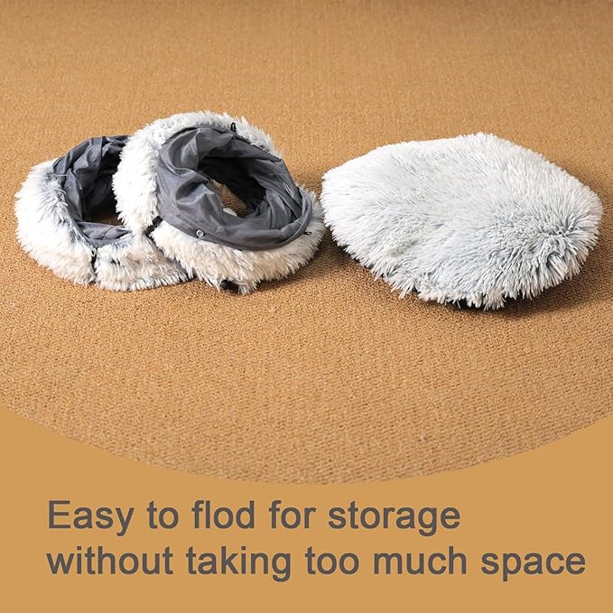 Cat Tunnel with Cat Bed for Indoor Cats, Soft Plush Peekaboo Cat Cave Donut Tunnel, Multifunctional Playground Toys Hideplace for Small Medium Large Kittens, Rabbit, Ferret