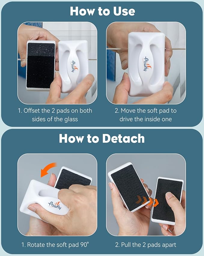- Strong Magnet: Powerful magnets keep both pads firmly attached to the glass – no slipping or falling off. Always deliver strong cleaning performance. For best performance, keep the magnets clean before use