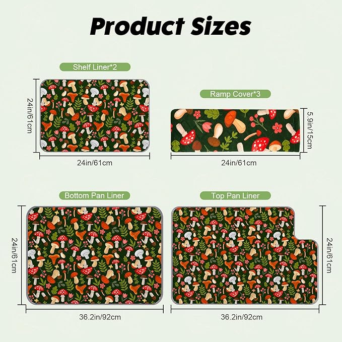 Bienbee Ferret Cage Liner Set for Ferret Nation & Critter Nation Cage, Waterproof Ferrets Cage Accessories for Small Animals Rats Chinchillas Hedgehogs Ferrets(Green Mushroom, Double Unit Combo)