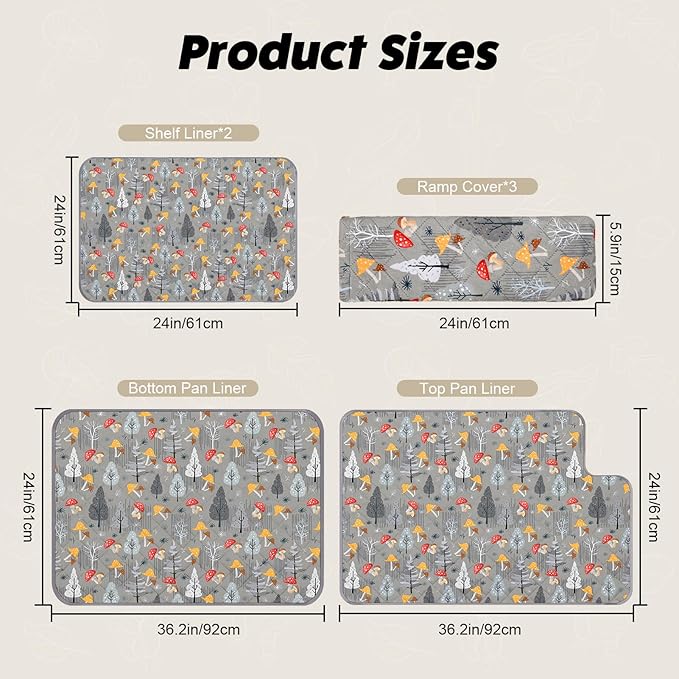 Bienbee Ferret Cage Liner Set for Ferret Nation & Critter Nation Cage, Waterproof Ferrets Cage Accessories for Small Animals Rats Chinchillas Hedgehogs Ferrets(Gray Mushroom, Double Unit Combo)