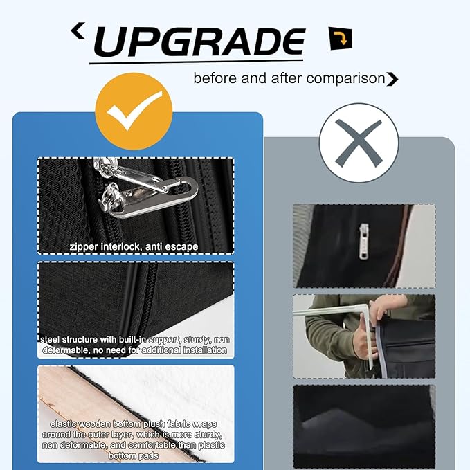 - [Complete Set of Accessories] Easy installation, easy use, easy fold, and easy store. Comes with two collapsible travel bowls for food and water, a litter box for easy clean, a hanging bed, four tent stakes, an small storage bag, two shoulder straps, a big bag for carriers storge. Perfect for both short and long car travels, vacations, camping trips, ensuring our little friends basic needs are met.