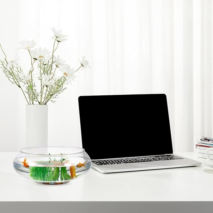 - Modern Aesthetic Display; With its rounded shape and transparency, this fish tank elevates any space. Perfect for weddings, office desks, or living rooms, its minimalist design is eye-catching and complements modern decor.