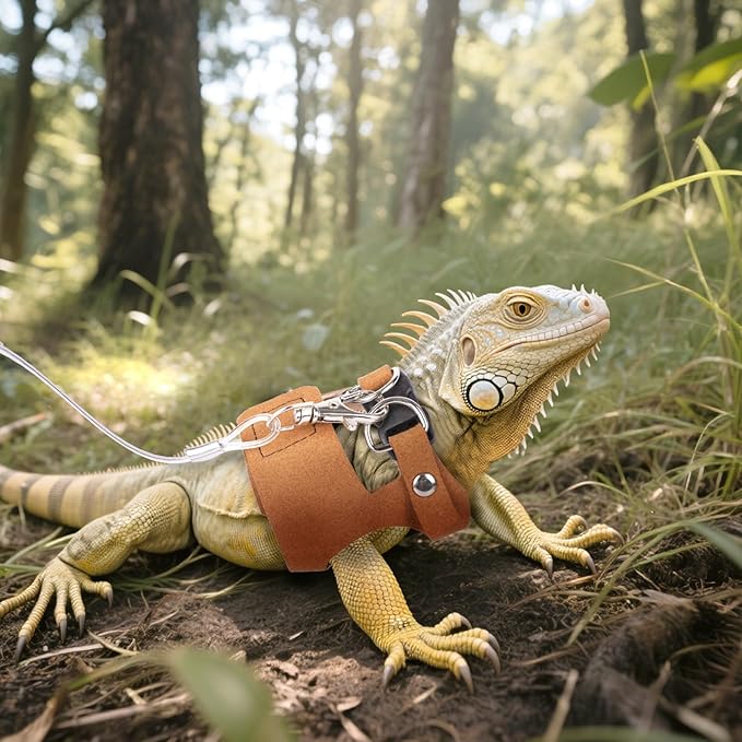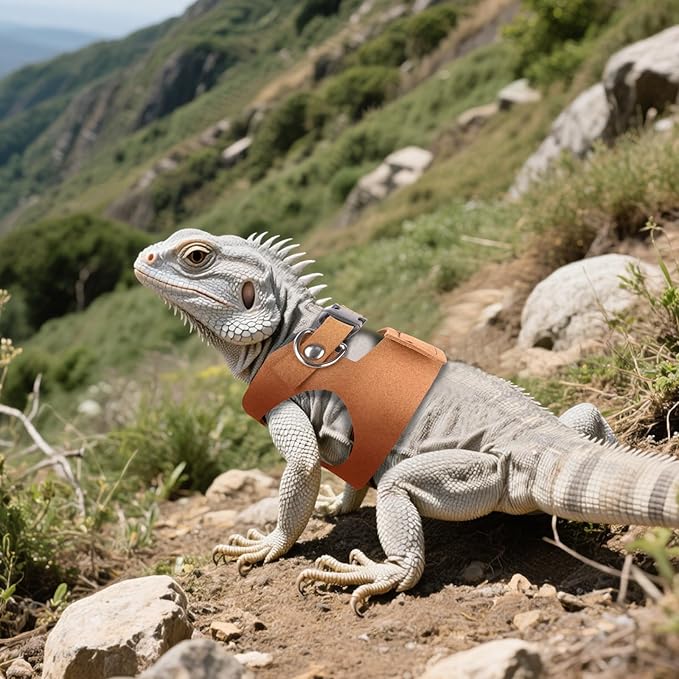 - Premium Multi-Pet Harness Set: Designed for reptile lovers, this bearded dragon harness and leash combo fits small pets like squirrels or ferrets. The soft leather material ensures comfort while the adjustable straps provide a secure fit without restricting movement, making it ideal for daily walks