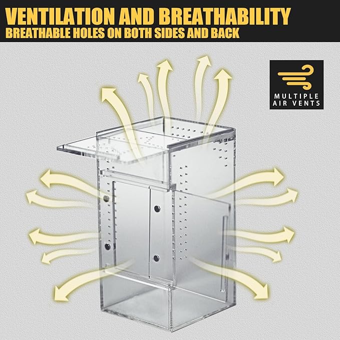 - 🔍【Clear Visibility for Observation】 Crystal-clear walls offer an unobstructed view of your pet's behavior, making it easy to monitor feeding, molting, or habitat conditions. A great enclosure for education, photography, or desktop displays