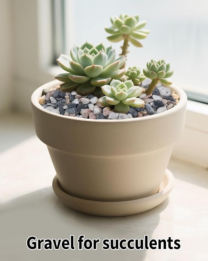 - Dual-Purpose Plant Solution - Use these pebbles as a decorative top layer to retain moisture, reduce soil splatter when watering, and create a protective barrier against pests—keeping your plants looking vibrant and healthy. As a bottom drainage layer, they promote rapid water flow to prevent root rot and overwatering, which are common issues for succulents and cacti that thrive in well-draining soil